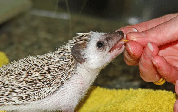 Pygmy hedgehogs love insects, especially mealworms and crickets. Only give up to two insects a day.
